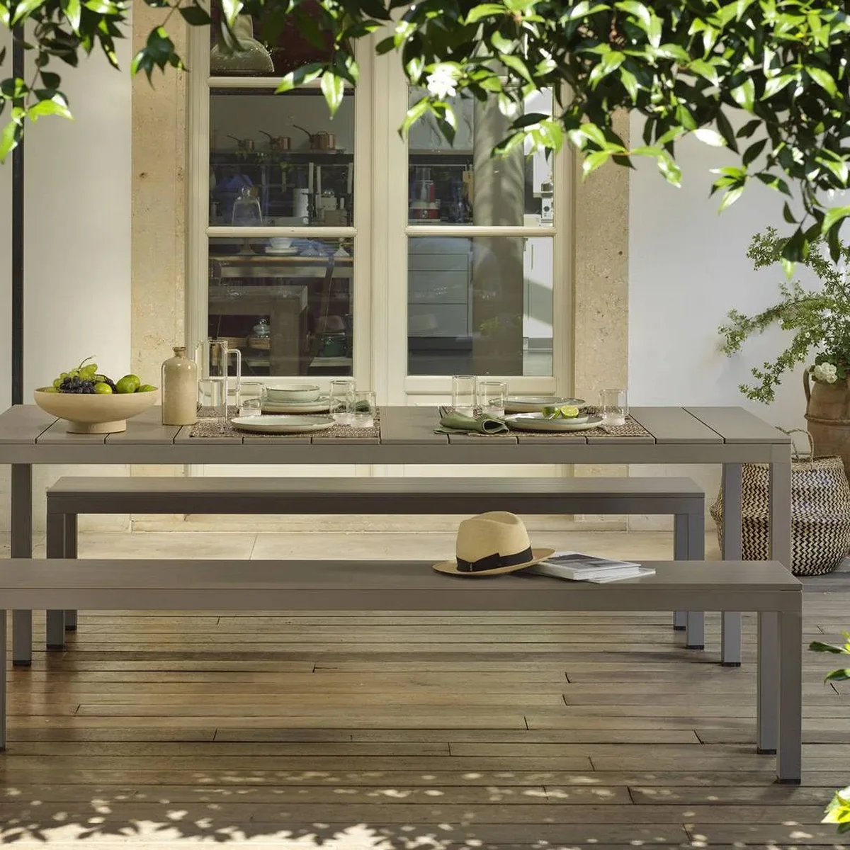 The Rio Alu bench from Nardi is made of epoxied aluminum and is, due to the material composition, perfect for outdoor use. Robust, versatile and with a sociable look, the Rio Aluminum bench is an invitation to get together. It is characterized by the clean lines and the characteristic sequence of staves on the seat.