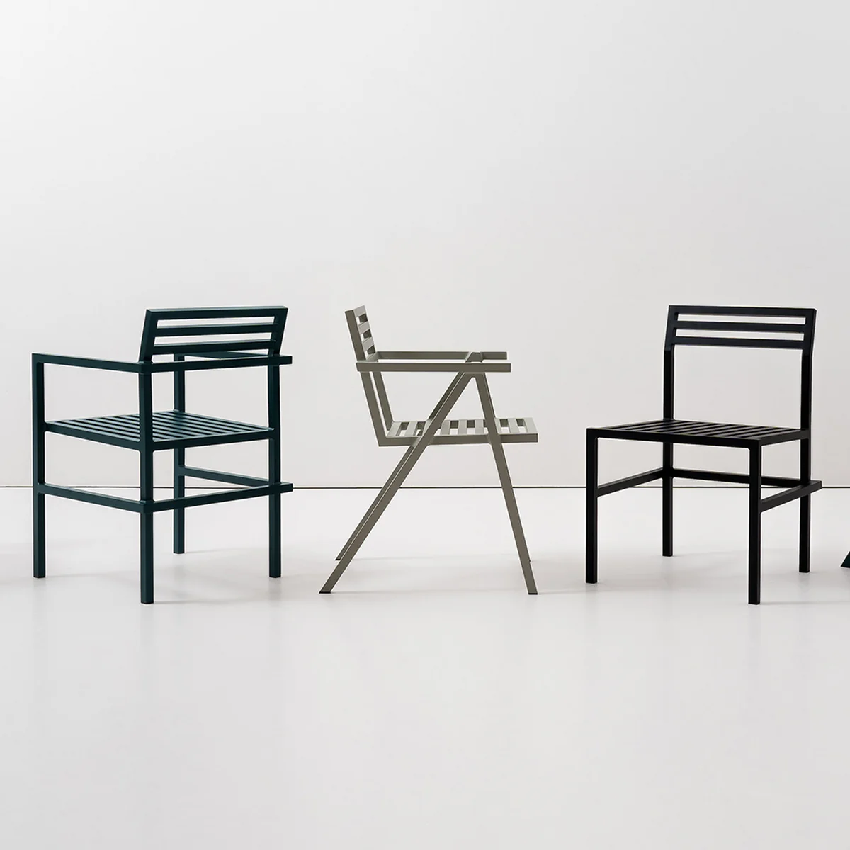 Each item in the series has an individual design. Through the material, color and proportions of aluminum extrusion unify the entire collection. The basis of the '19 Outdoor' series is the design project '19 Chairs' - 19 chairs were made in 19 days, delivered to 19 locations, reworked by 19 creatives and this was done during the COVID-19 phase. The purpose was to design a response in favor of Age UK & Resourcing Racial Justice, regarding the damage of COVID-19 restrictions within the artist scene.