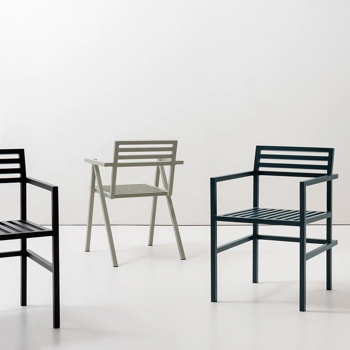The 19 Outdoors Dining Armchair by Butterfield Brothers for the manufacturer NINE inspires with their unique, modern design. The '19 Outdoor' collection is inspired by the designers' '19 Chairs' charity project. The armchair is suitable for outdoor use and is made of aluminum. The material can be recycled with little energy input and reused as a recyclable item - accordingly, the fully inclusive production process is sustainable. The Outdoor Dining Armchair is available in different colors.
