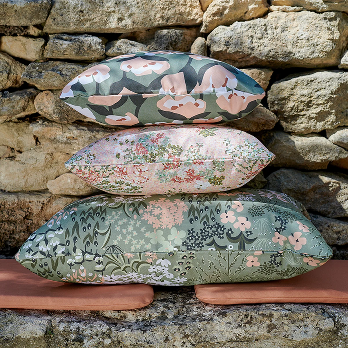The Bouquet Sauvage Outdoor cushion from Fermob is wonderful for use in the garden or on the terrace. The cushion is made of stain-resistant and mildew-resistant material, which makes the cushions particularly suitable for outdoor use. With an attractive floral pattern that is available in different designs, the cushion enhances any interior and sets beautiful accents. The cushion can be used both indoors and outdoors.