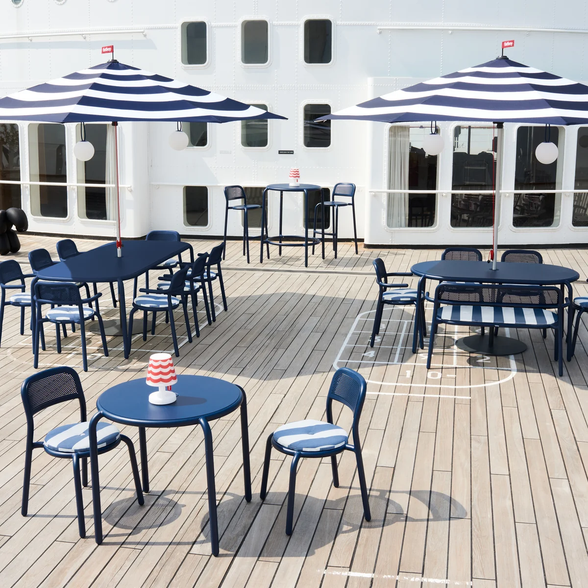 Fatboy It wouldn't be Fatboy without a clever detail in the design: Toní Tavolo has an opening in the middle of the table top that is suitable for parasols or candle holders from the Finnish manufacturer. A candle holder for a candle is included.
