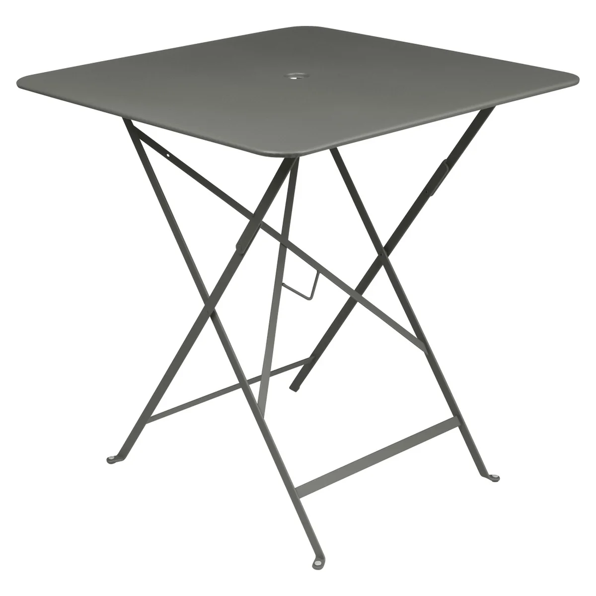 The Fermob garden table, measuring 71 x 71 cm, has a small recess in the middle of the table top that serves as a practical parasol holder. Parasols with a stand of max. Ø 41 mm can be inserted into the table top.