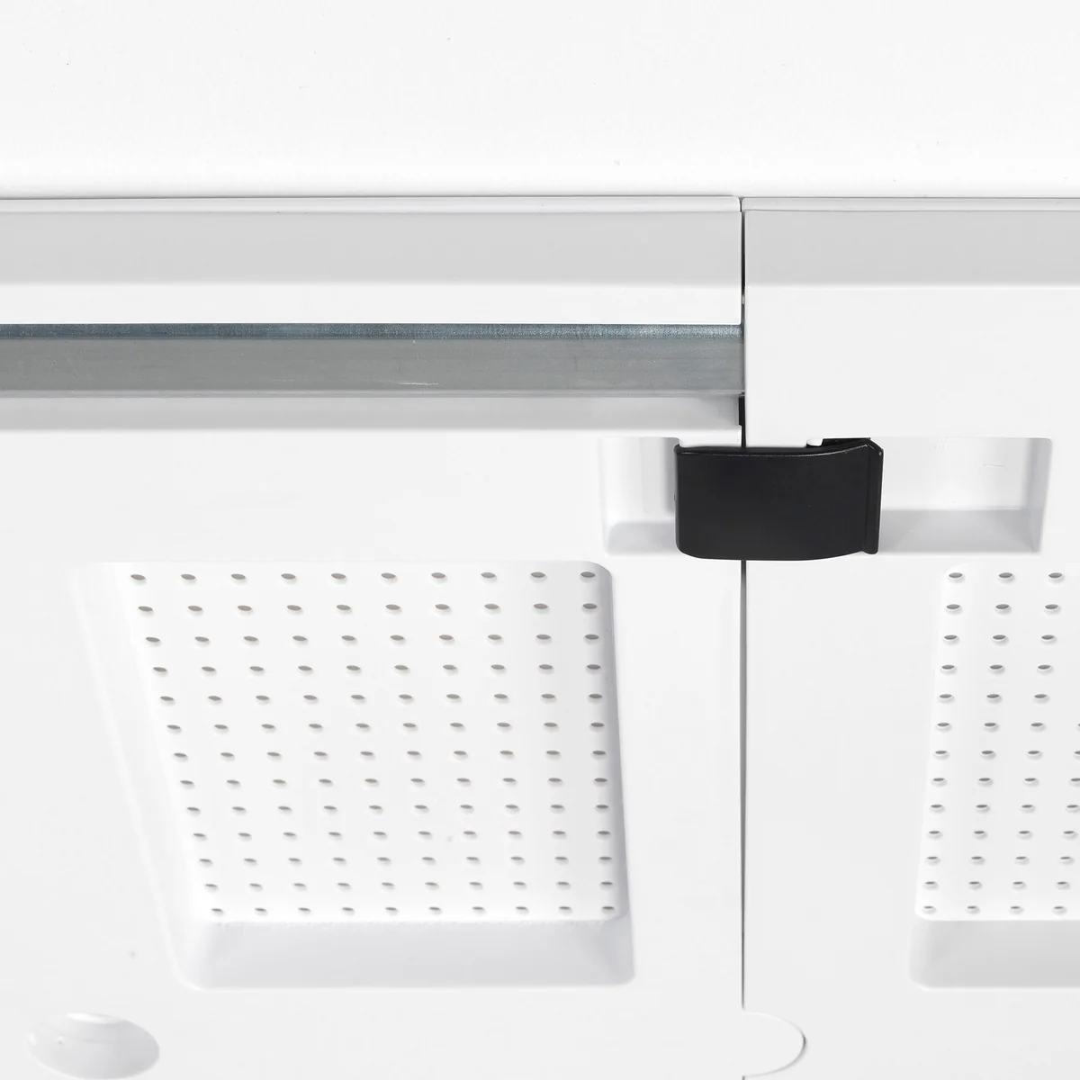 The DurelTOP table top is made of recyclable, UV-resistant polypropylene, which does not splinter thanks to its full colouring. The feet are height-adjustable to adapt to any terrain.