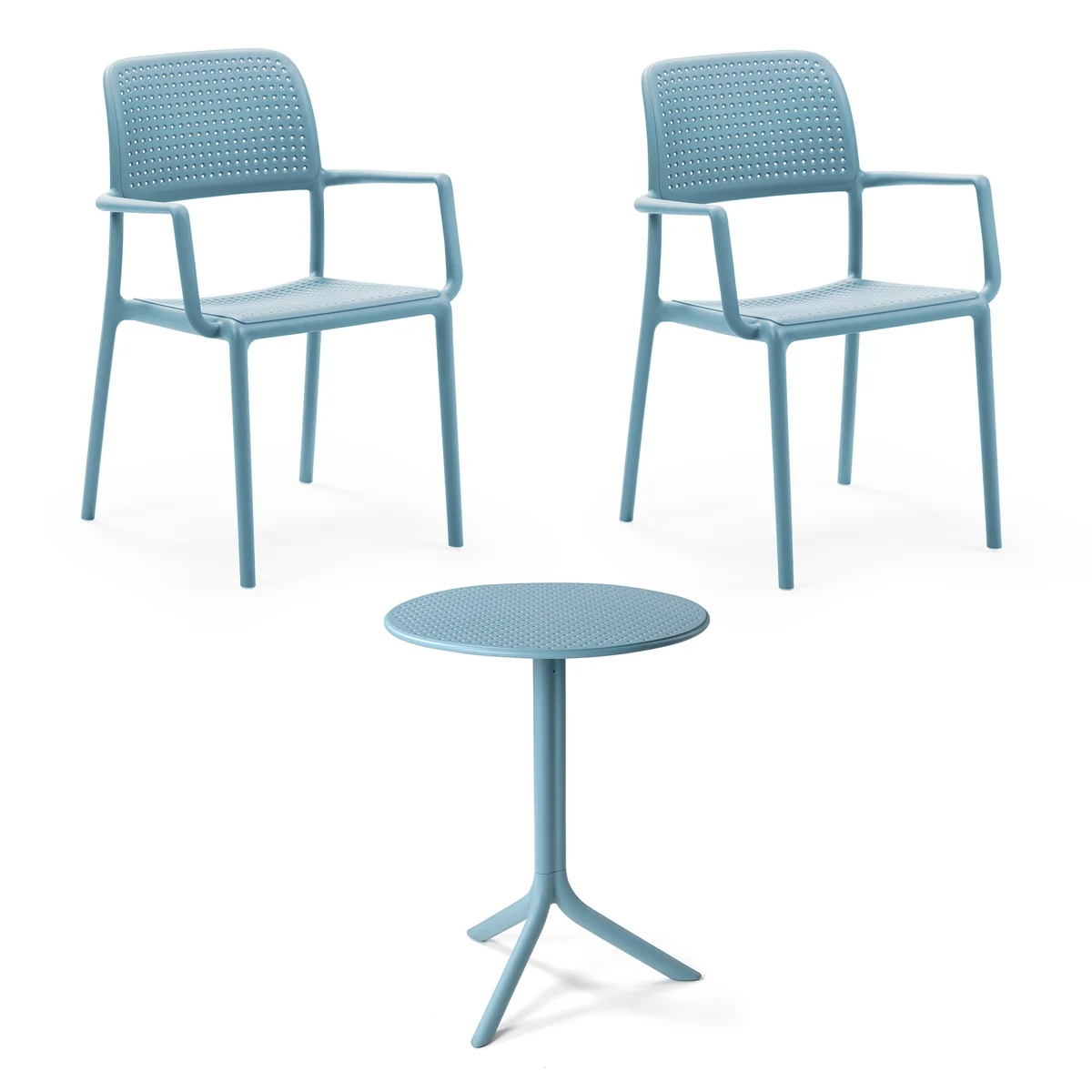 The Bora Armchair by Raffaello Galiotto for Nardi is a wonderful addition to the outdoor ambience. On the balcony, terrace or in the garden, cozy sunny hours can be spent in the chair. Round edges and the armrests provide a pleasant comfort. Due to the perforated seat, the back is also pleasantly ventilated in the summer and rainwater can easily drain away.