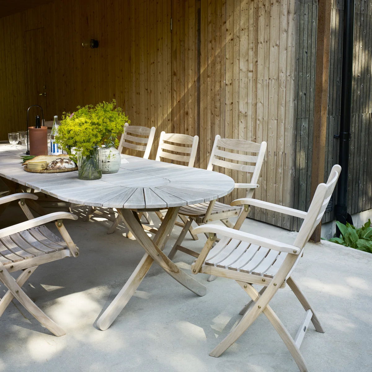 Made of teak wood is the Selandia Series of Skagerak particularly resistant to rot and fungal decay and is therefore ideal for outdoor use. To preserve the beauty of the wood, it is recommended to regularly treat the teak garden table with furniture oil to prevent patination of the wood.