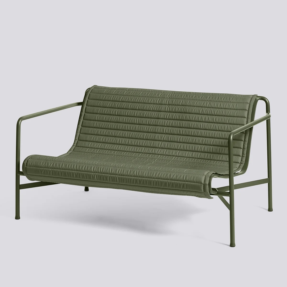 With the Palissade Quilted Cushion by Iskos-Berlin for HAY, the lounge sofa from the Palissade lounge sofa from the collection of the same name by Erwan & Ronan Bouroullec is now even more comfortable. The quilted upholstery in various matching colors consists of a 15 mm thick foam filling and a polypropylene cover. This makes it weatherproof, waterproof and robust. Even the sun's rays cannot fade the cushion.