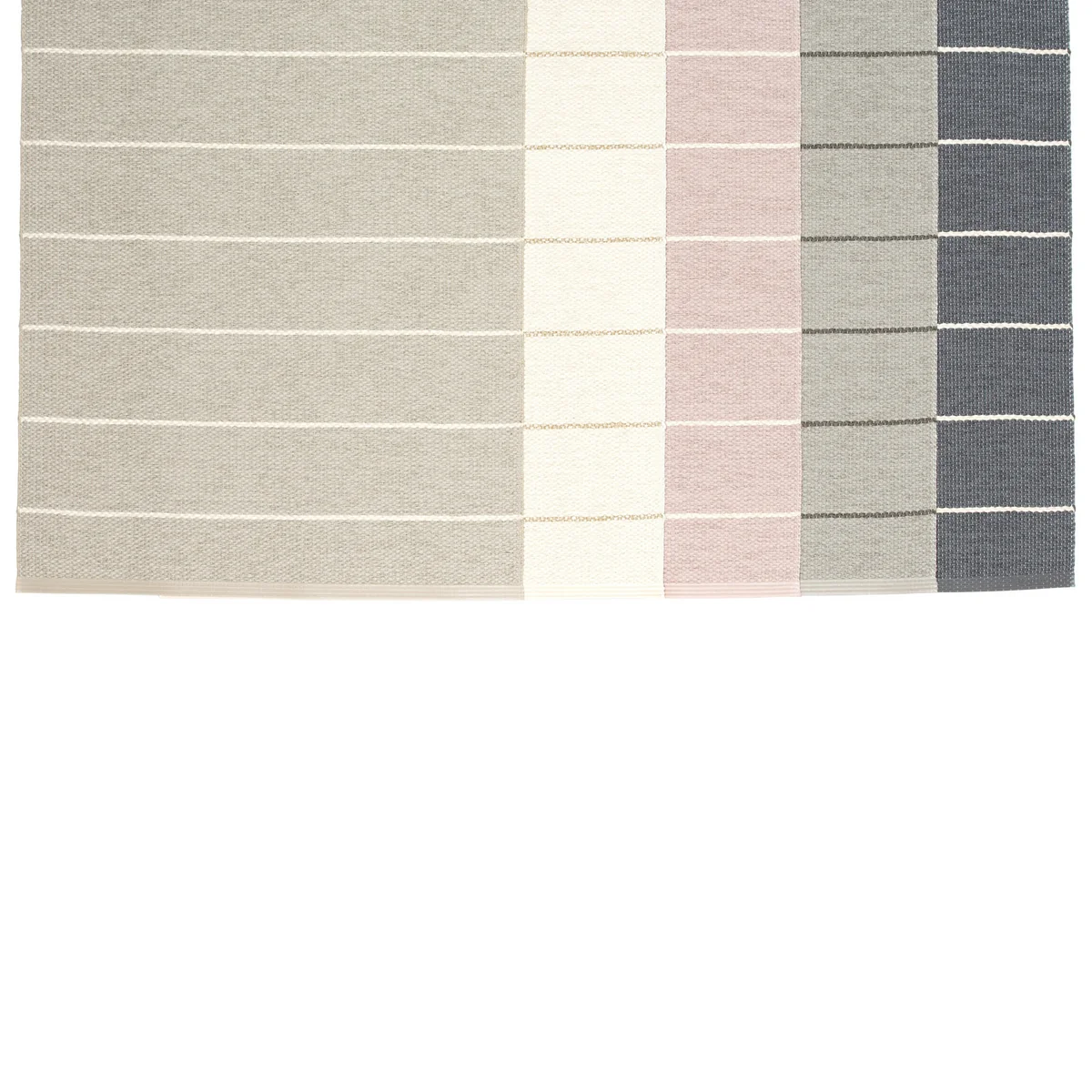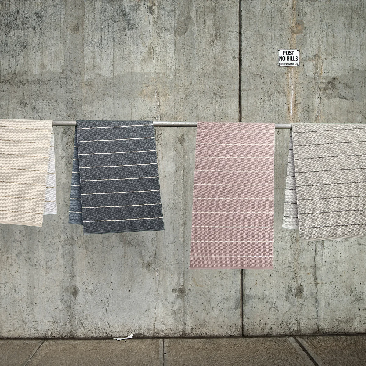 Pappelina s runners are woven in Sweden from PVC-based plastic film. This is done by a weaving mill, which produces the carpets from plastic on traditional looms. The carpets made of PVC and polypropylene are suitable for both indoor and outdoor use and convince with their robust and weather-resistant properties. A welded and reinforced end with embossed Pappelina - Logo additionally extends the life of the carpet.