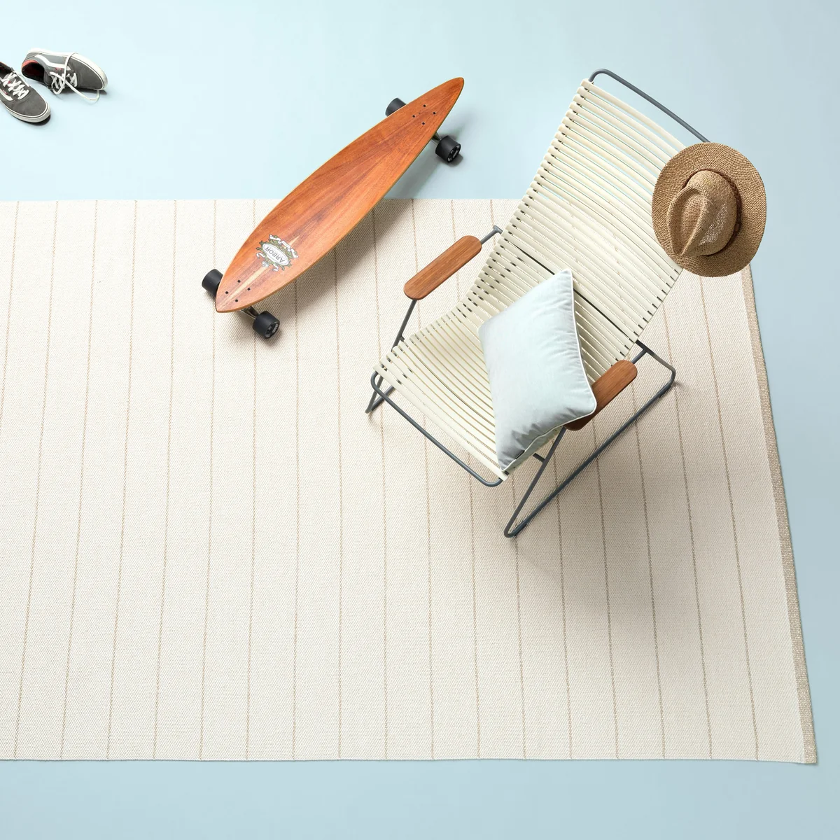The tapestry Carl of Pappelina is a decorative plastic carpet in a discreet stripe pattern, which enchants with a different colouring on both sides. The front and back differ in their colour shades and show a lighter and a darker variant of the basic colour. This makes the carpet flexible in use and by turning it over, new accents can quickly be set in the living space.