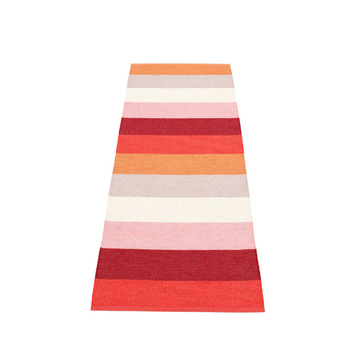 The plastic Molly rug by Pappelina Molly features a colourful striped pattern and is suitable to use indoors and outdoors thanks to its robust material. Not only will it look great in the hallway and living room, but it is also a real eye-catcher on the terrace and balcony.