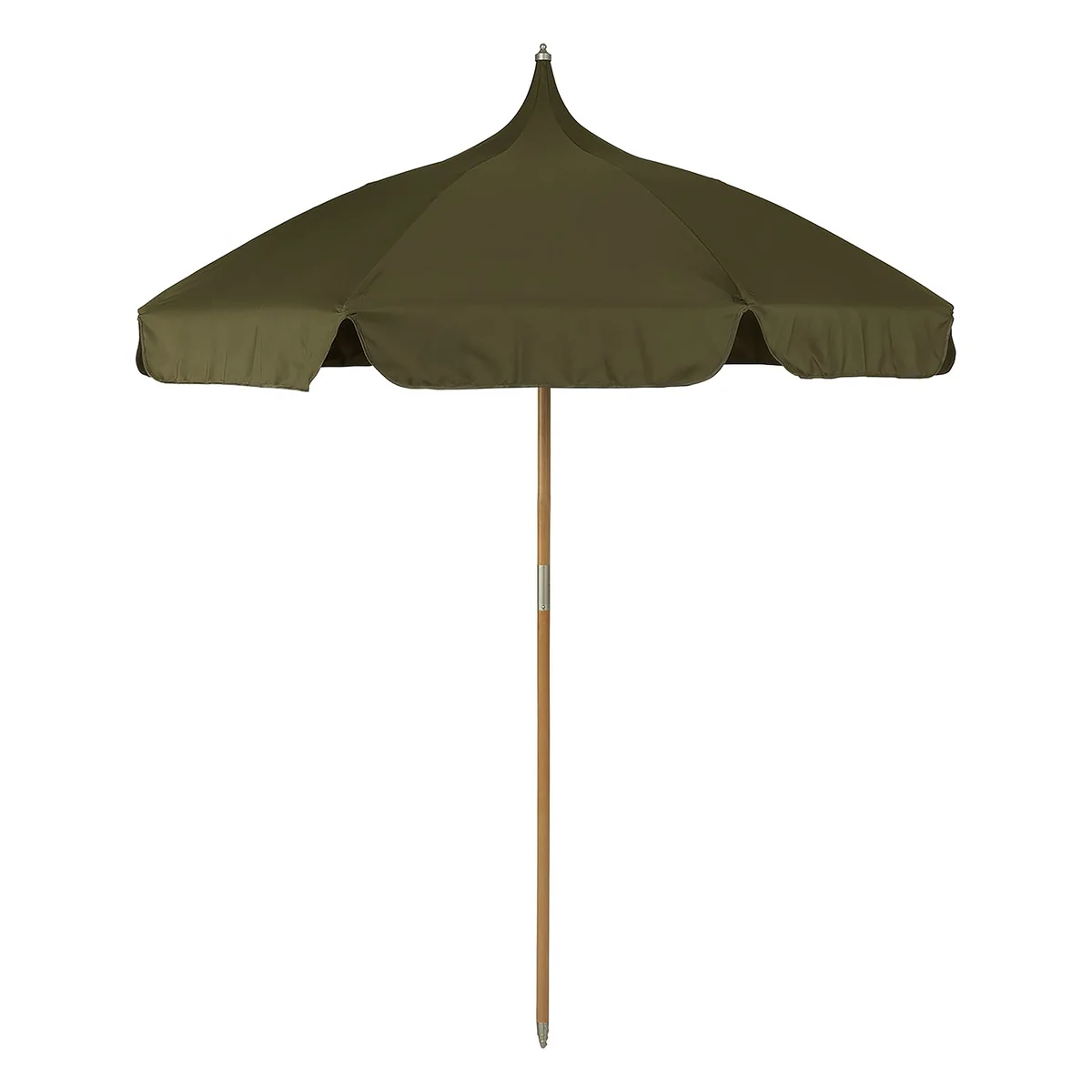 The Lull Parasol from Ferm Living provides the perfect shield for the relentless heat of summer. The parasol invites relaxed and serene moments in the shade and is ideal for garden picnics at the beach and wherever protection from the sun is needed. With its romantic pagoda shape and FSC-Certified™ wooden handle, the umbrella provides a spacious area for communal outings. The Lull Umbrella offers UV30+ protection and comes in a convenient matching bag for easy transport.