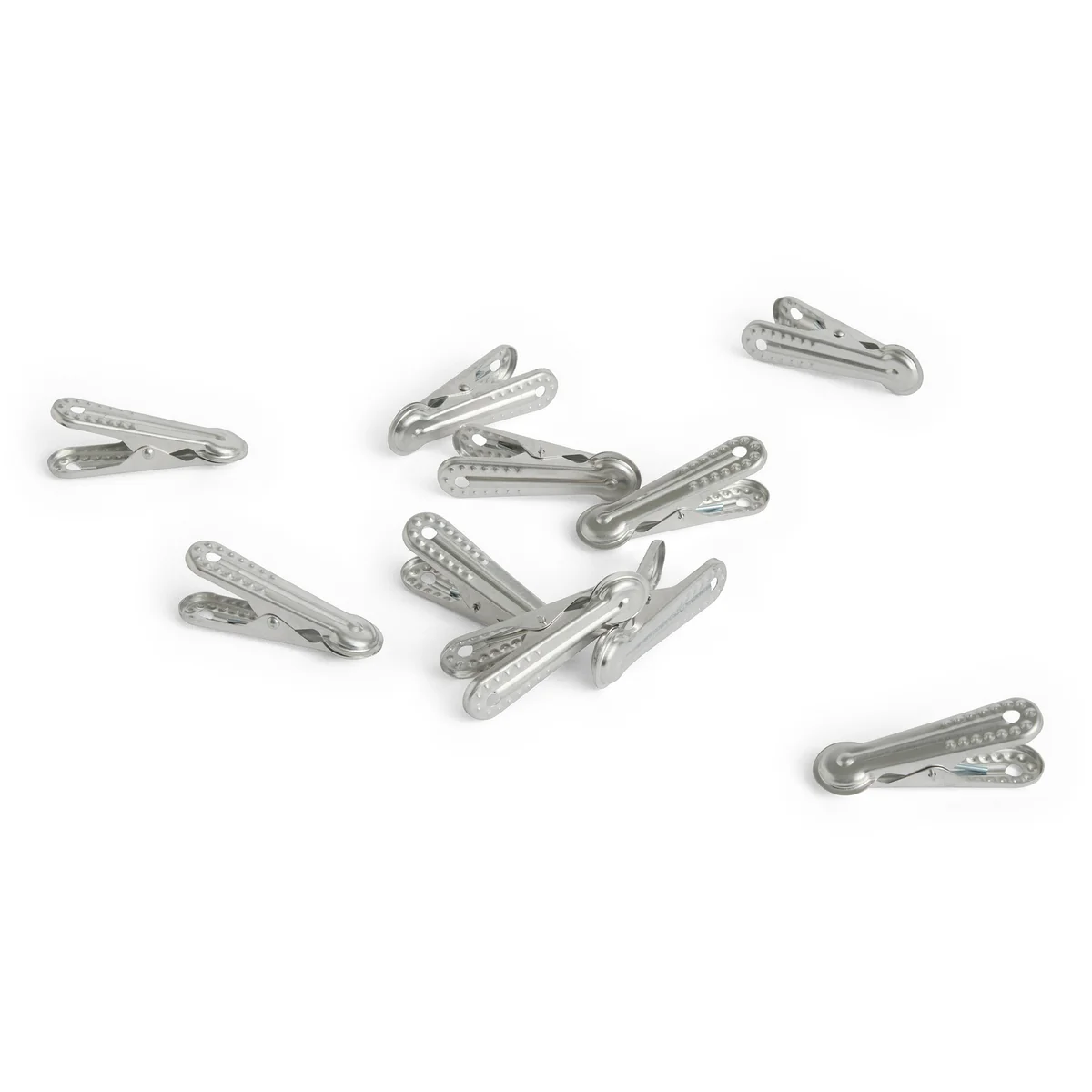 Whether for fixing tablecloths in the garden, hanging up laundry or closing bags - the clamp is a practical clamping element for numerous everyday situations. Its clear design makes it a functional accessory with aesthetic appeal.