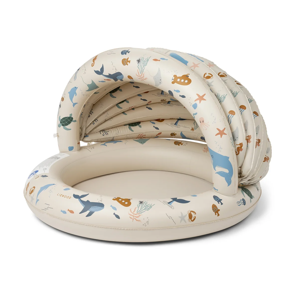 The Hadleia pool with shell roof from LIEWOOD provides refreshing bathing fun on sunny days. With a diameter of 108 cm, it offers plenty of space for splashing around, while the integrated shell-shaped roof provides pleasant shade and protection from direct sunlight.