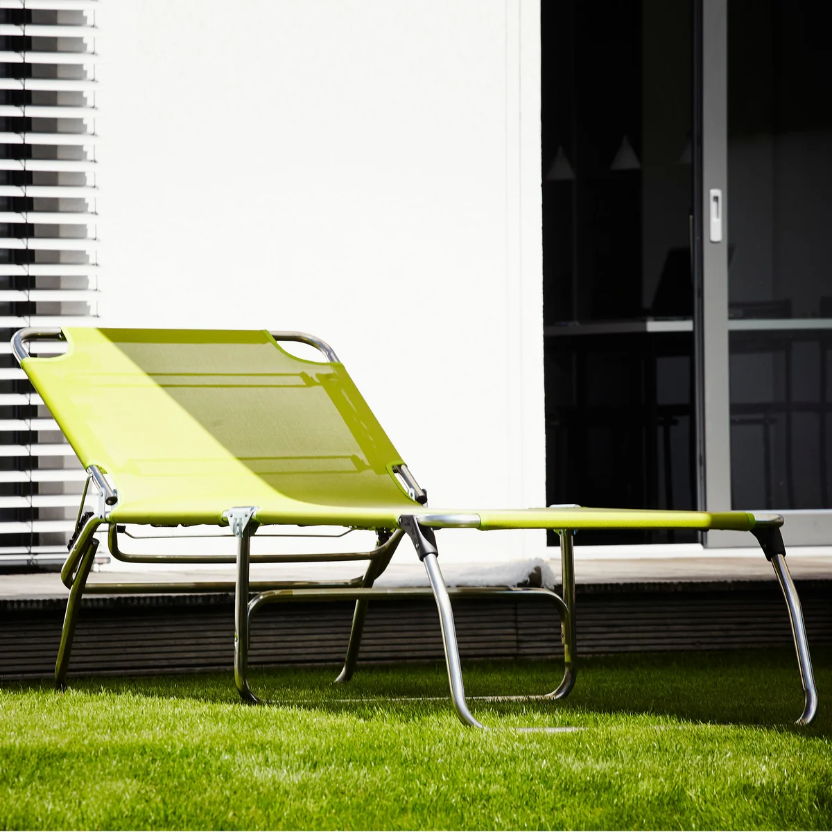 The backrest can be adjusted into four different positions, so that the three-legged lounge always offers the favoured position. The larger edition of the Amigo sunbed is also extremely stable on its three legs. The frame is made of aluminium - making it both stable and light.