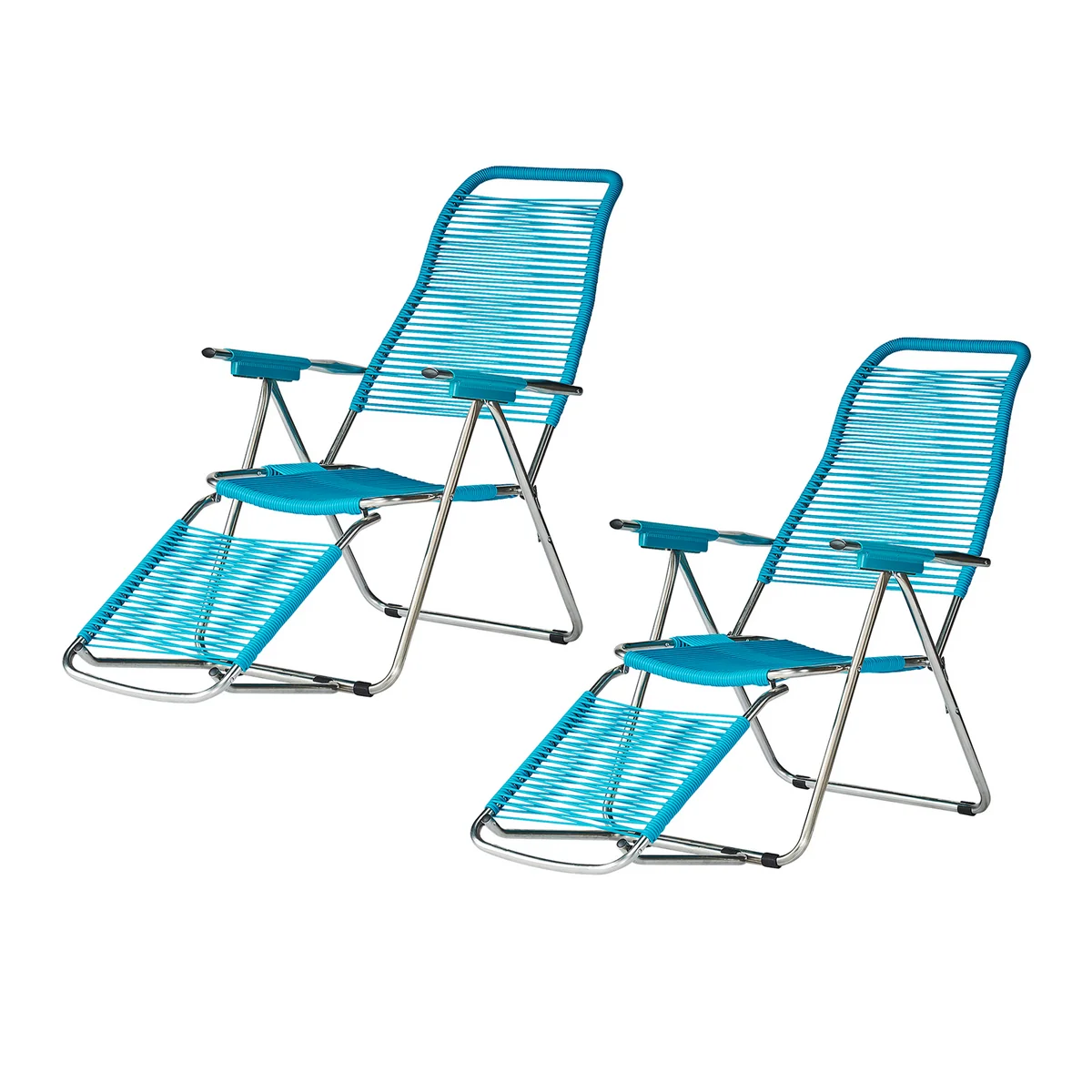 The deck chair Spaghetti from Fiam convinces with an aluminum frame and a PVC-tape lacing in Spaghetti shape. The design comes from the 1980s and is not only timeless and modern, but also extremely comfortable.