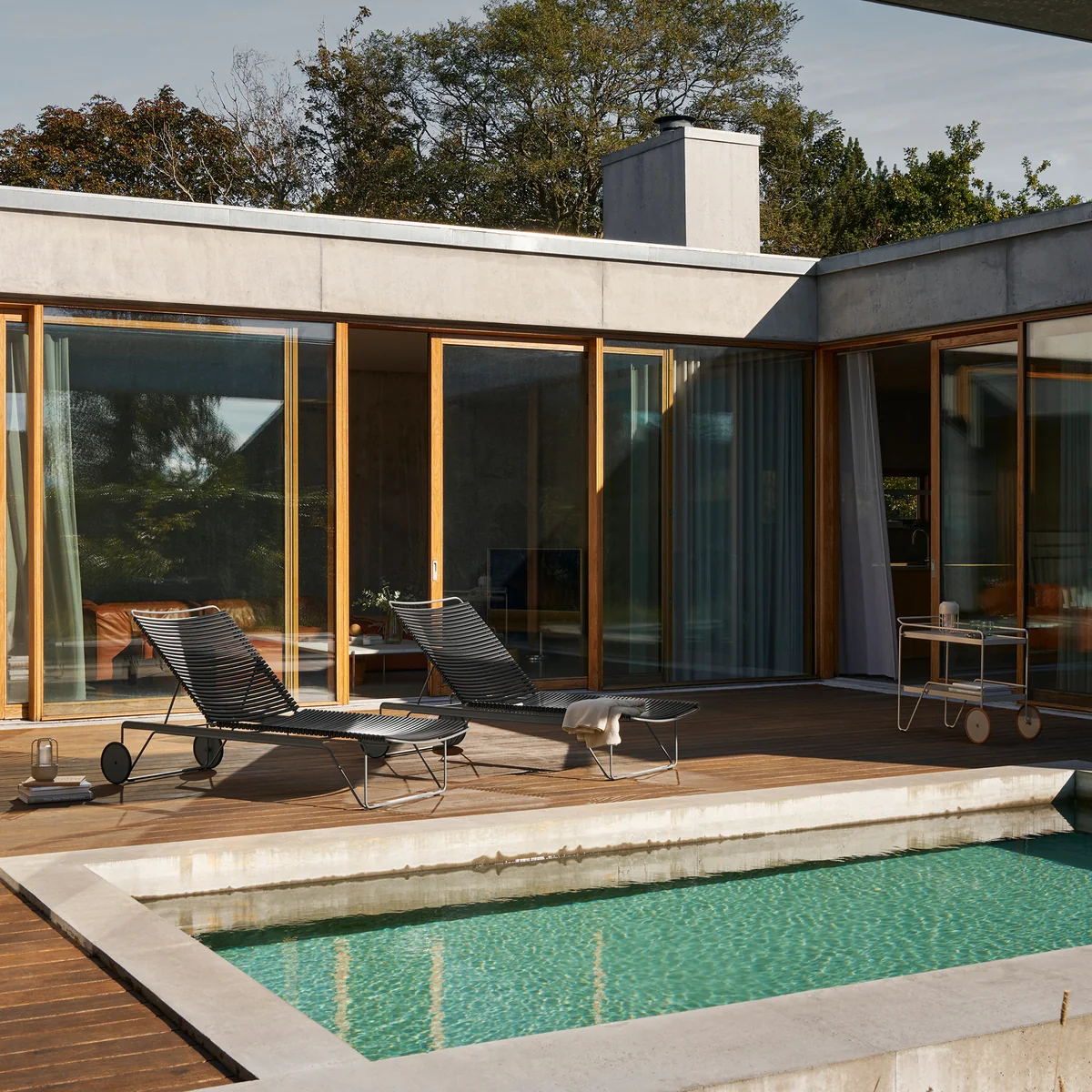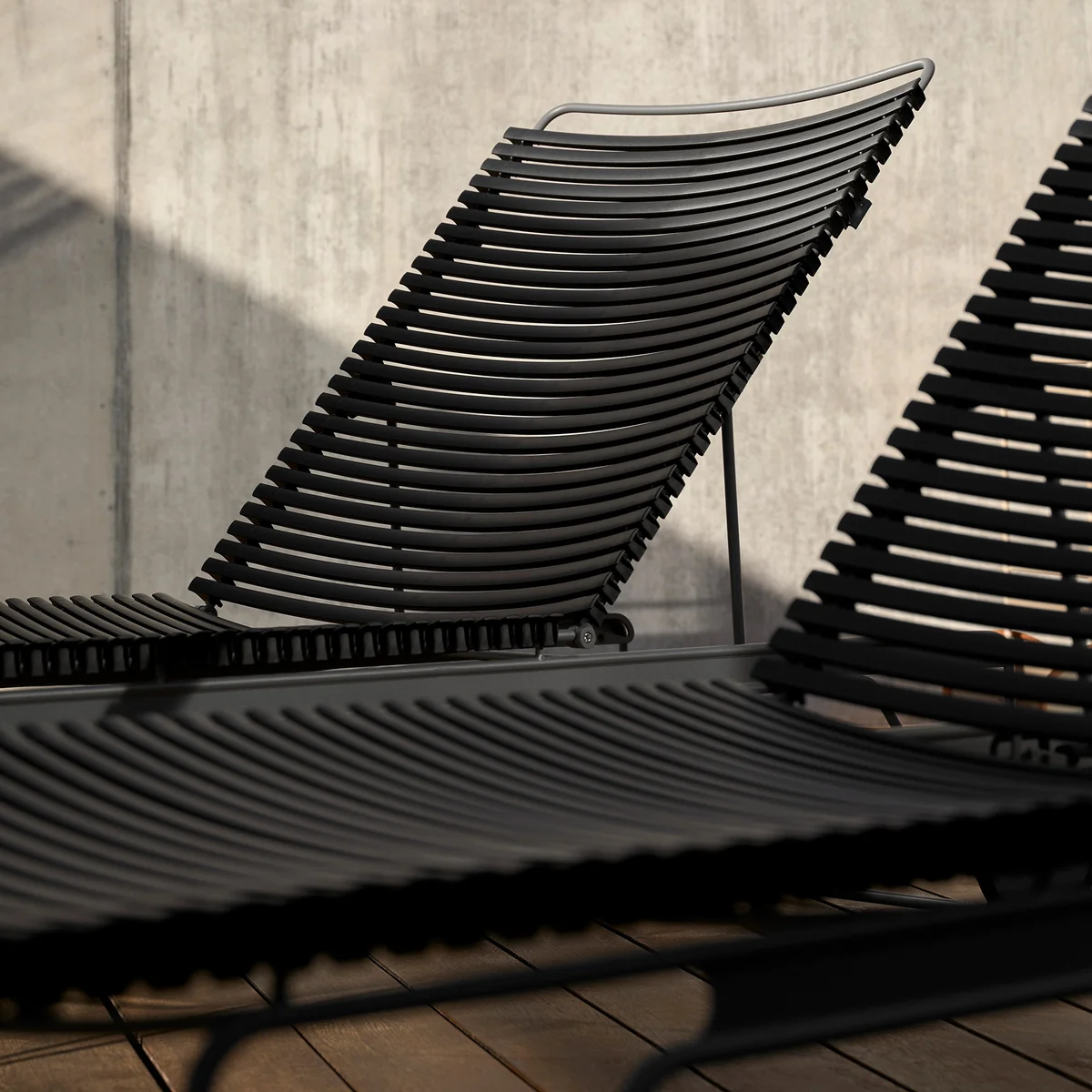 The CLICK adjustable chaise longue stands for individual comfort and clear Scandinavian design. Thanks to the adjustable backrest, the reclining position can be adjusted effortlessly - from sitting upright with a book to leaning back and relaxing in the sun. The wide slats offer a balanced combination of flexibility and support and ensure a high level of comfort without the need for additional cushions. For even more comfort, the chaise longue can be optionally supplemented with a matching HOUE lounge cushion . Clean lines, durable materials and functional design make it the ideal companion for quiet outdoor moments.