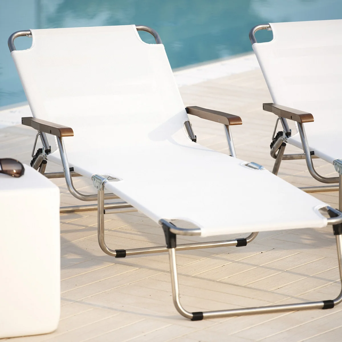 The materials used for the folding couch from Fiam are particularly innovative. The frame is made of aluminium - so it is stable and light at the same time. The cover of the deck chair is made of Textilene, a high-tech fabric that is weatherproof and UV-resistant. Textilene is so flexible and permeable to air that comfortable sitting and lying is guaranteed. The modern textile is also easy to care for and clean.