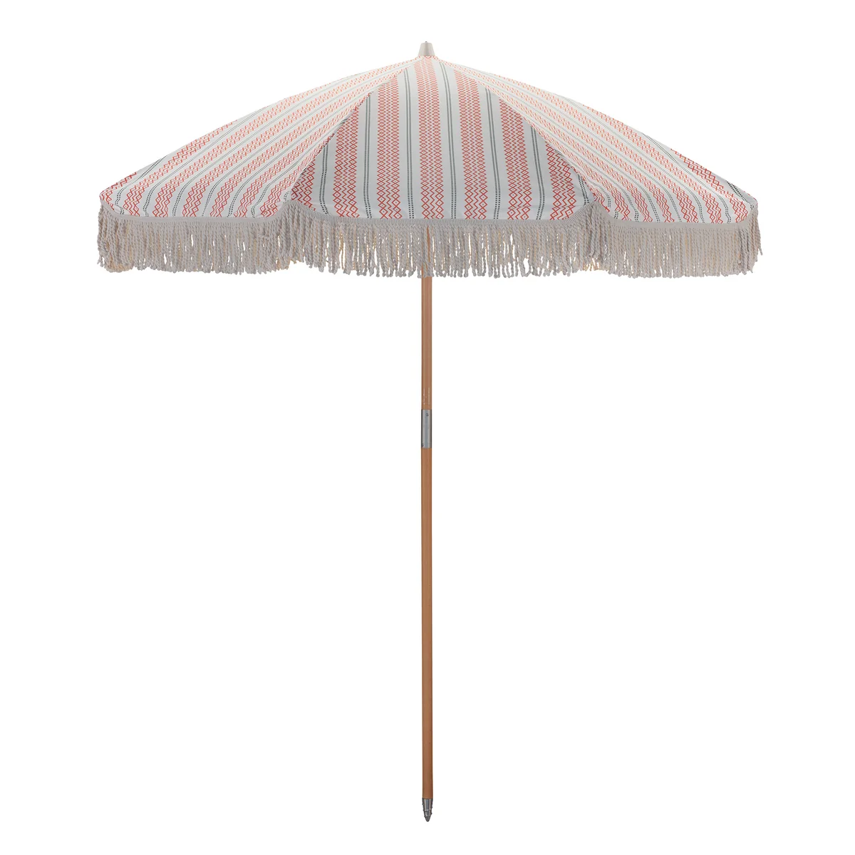 The Umbra Parasol helps create beautiful shady spots for warm summer days. The pleasant patterns as well as the thick, long fringes give the outdoor area a stylish look with a distinctive touch of vintage.