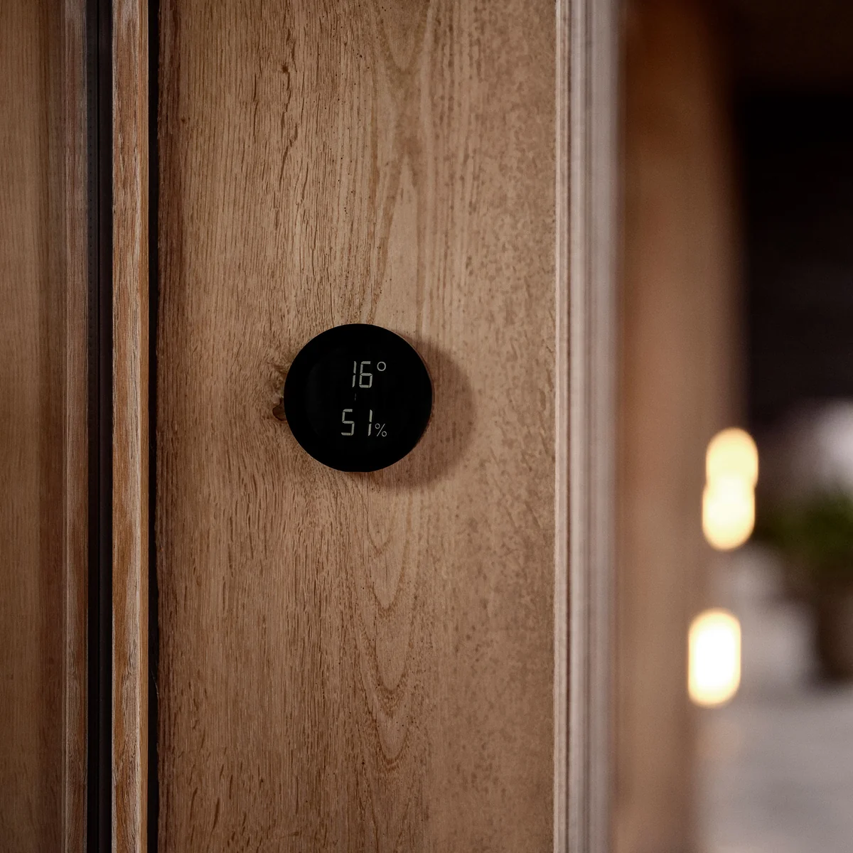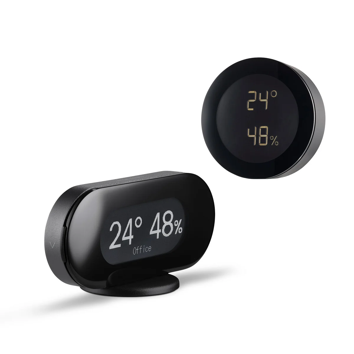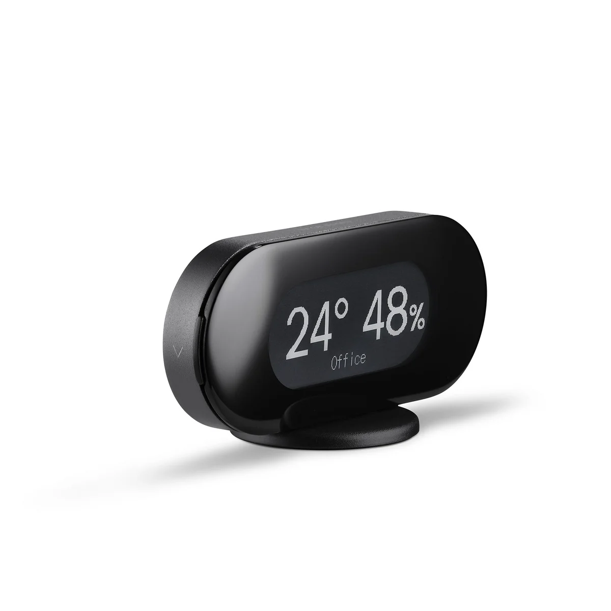 The compact climate station from Jacob Jensen combines timeless design with functional precision. It measures temperature and humidity indoors and can be linked with up to four separately available sensor units to centrally monitor climate values at different locations - indoors and outdoors. The energy-saving E-Ink display ensures excellent readability with minimal energy consumption. With an integrated magnet, table stand and wall mount, it can be used flexibly and can also be stacked perfectly with the Jacob Jensen alarm clock.