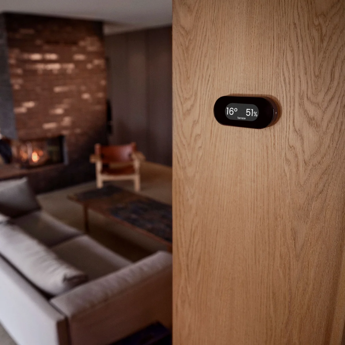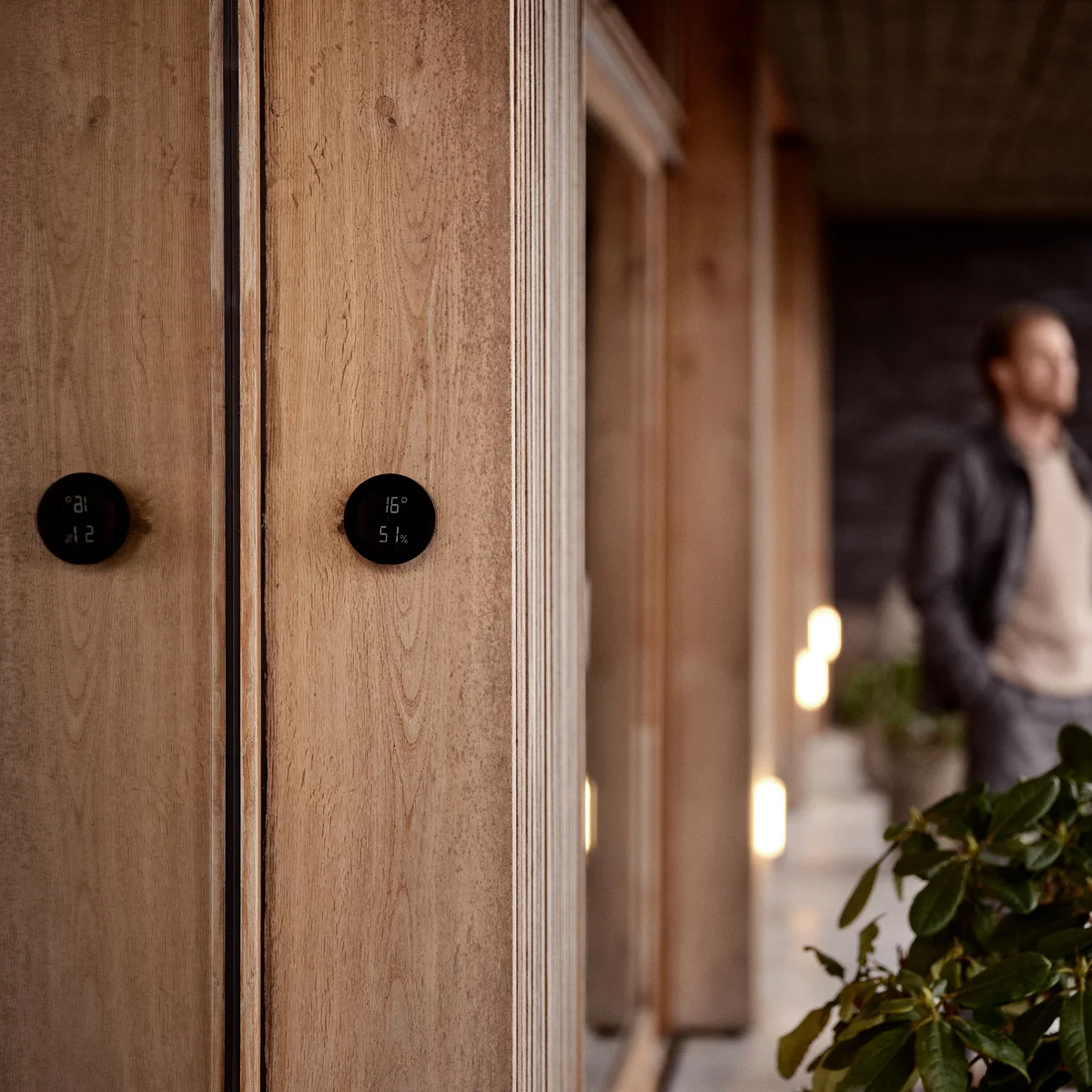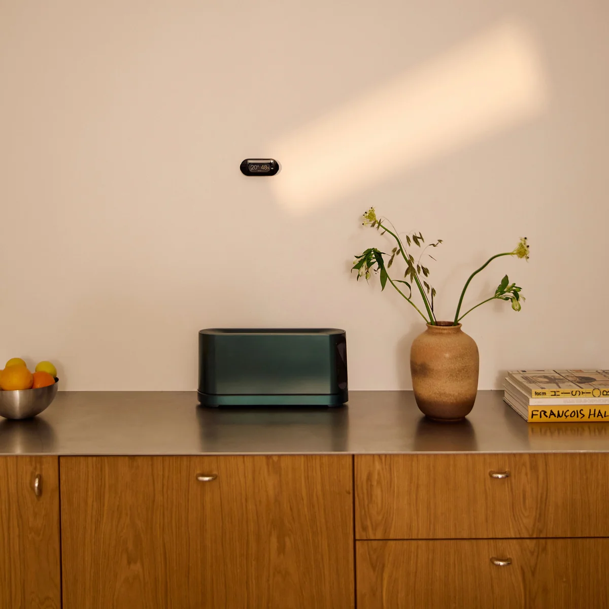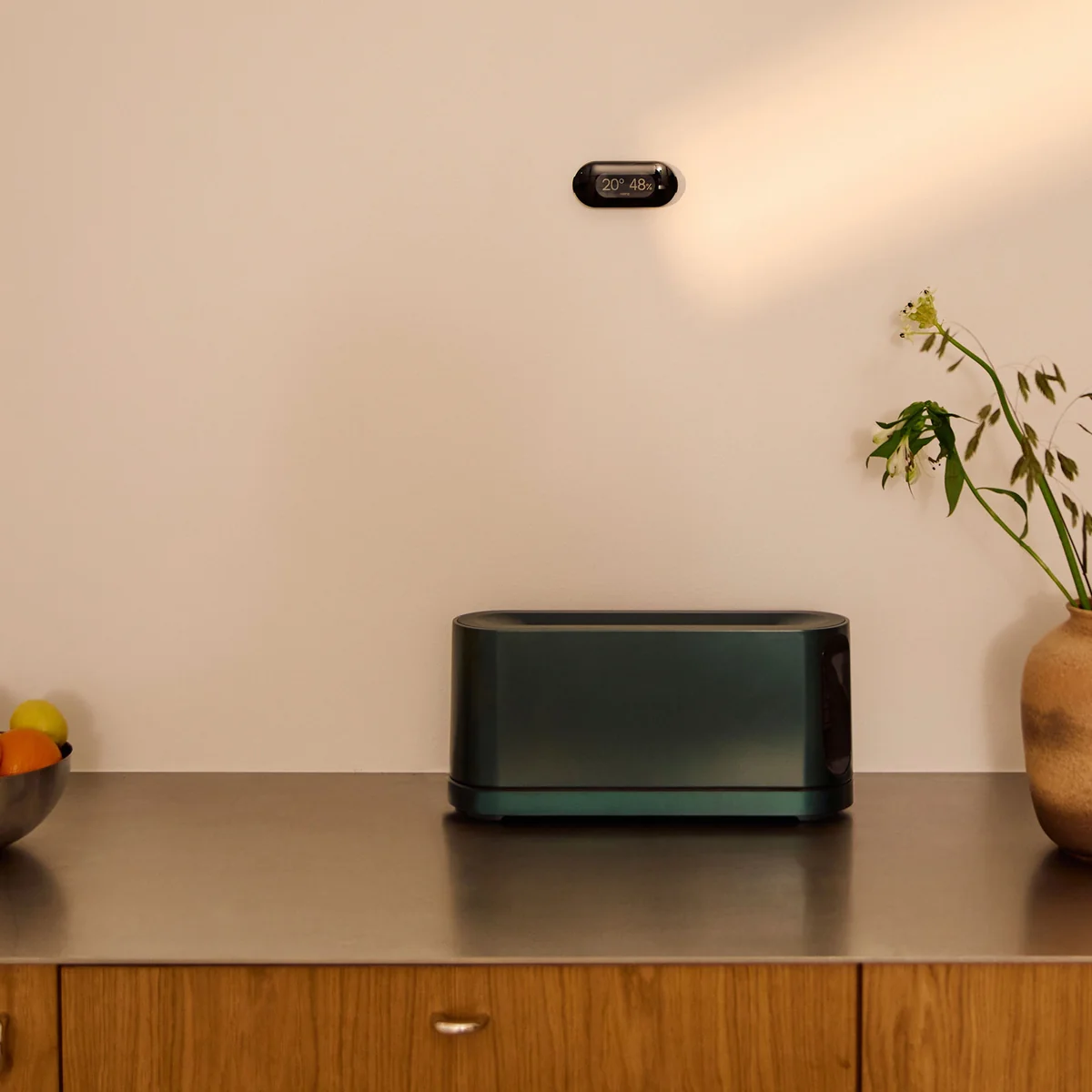 The compact climate station from Jacob Jensen combines timeless design with functional precision. It measures temperature and humidity indoors and can be linked with up to four separately available sensor units to centrally monitor climate values at different locations - indoors and outdoors. The energy-saving E-Ink display ensures excellent readability with minimal energy consumption. With an integrated magnet, table stand and wall mount, it can be used flexibly and can also be stacked perfectly with the Jacob Jensen alarm clock.