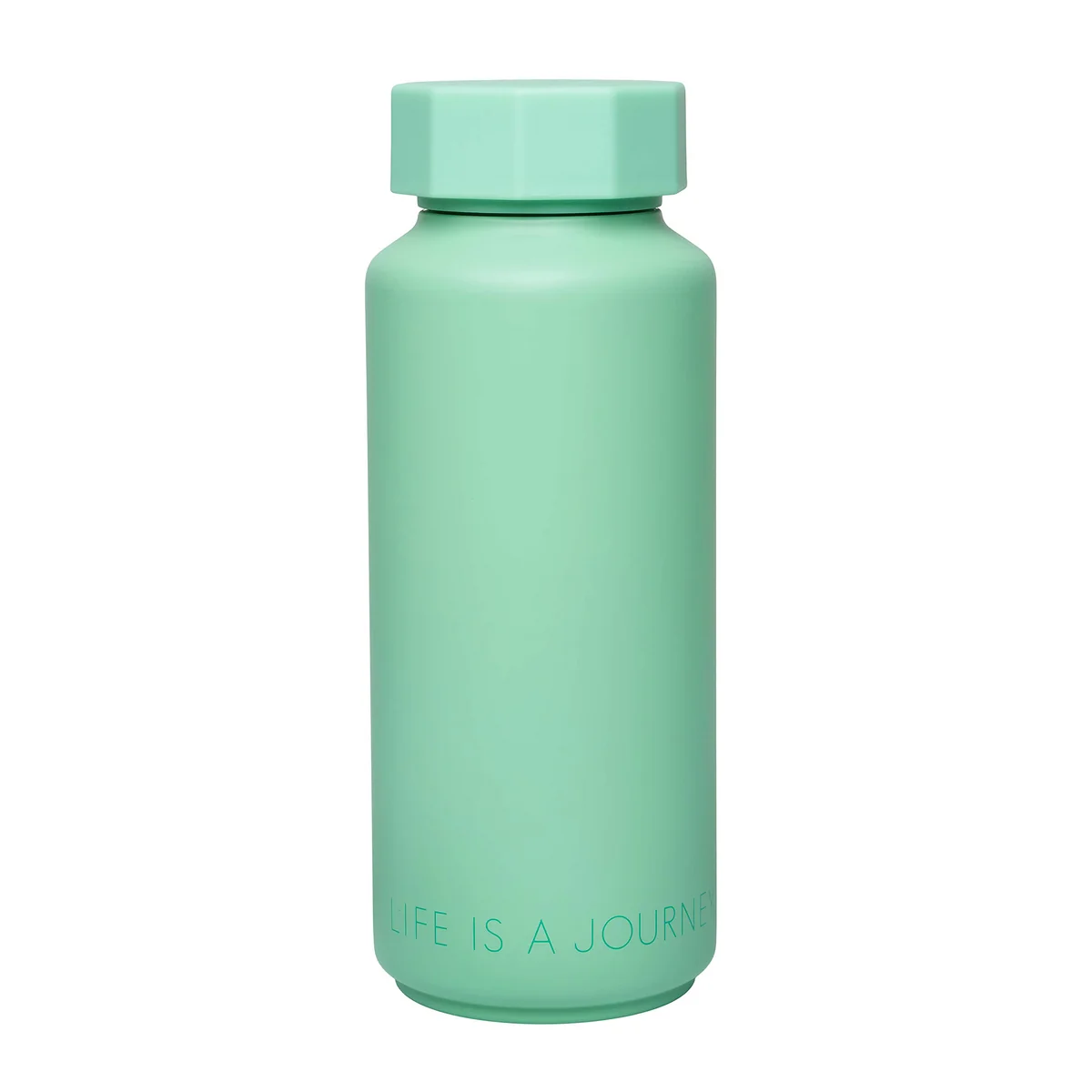 The design of the thermos flask has a stylish retro look with various inscriptions in different colors. The typography comes from Arne Jacobsen and was originally designed in 1937 for the signage of the town hall in Aarhus. The straightforward design has lost none of its charm to this day and now adorns numerous products from Design Letters .
