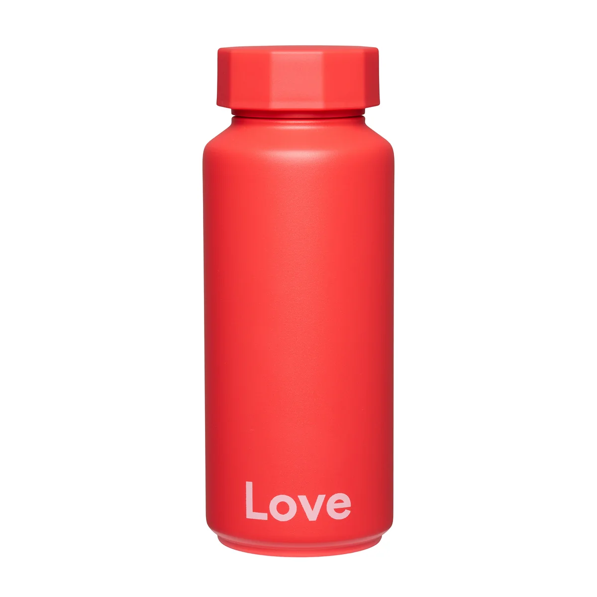 The design of the thermos flask has a stylish retro look with various inscriptions in different colors. The typography comes from Arne Jacobsen and was originally designed in 1937 for the signage of the town hall in Aarhus. The straightforward design has lost none of its charm to this day and now adorns numerous products from Design Letters .