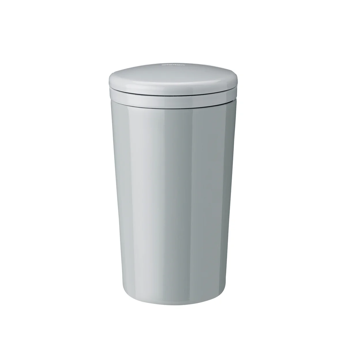 The insulating body of the thermo mug consists of a double wall of stainless steel pressed together by vacuum. The fine finish keeps drinks warm for up to 5 hours or cold for 10 hours. The ingenious closure makes it possible to drink from all sides and the outer coating prevents burns. The cup is available in different colors and dishwasher safe.