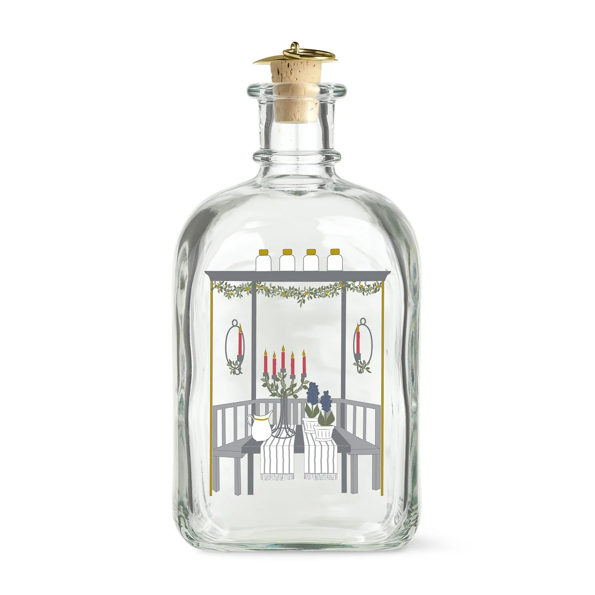 The Christmas bottle is made from blown glass and is conveniently closed with a cork lid.
