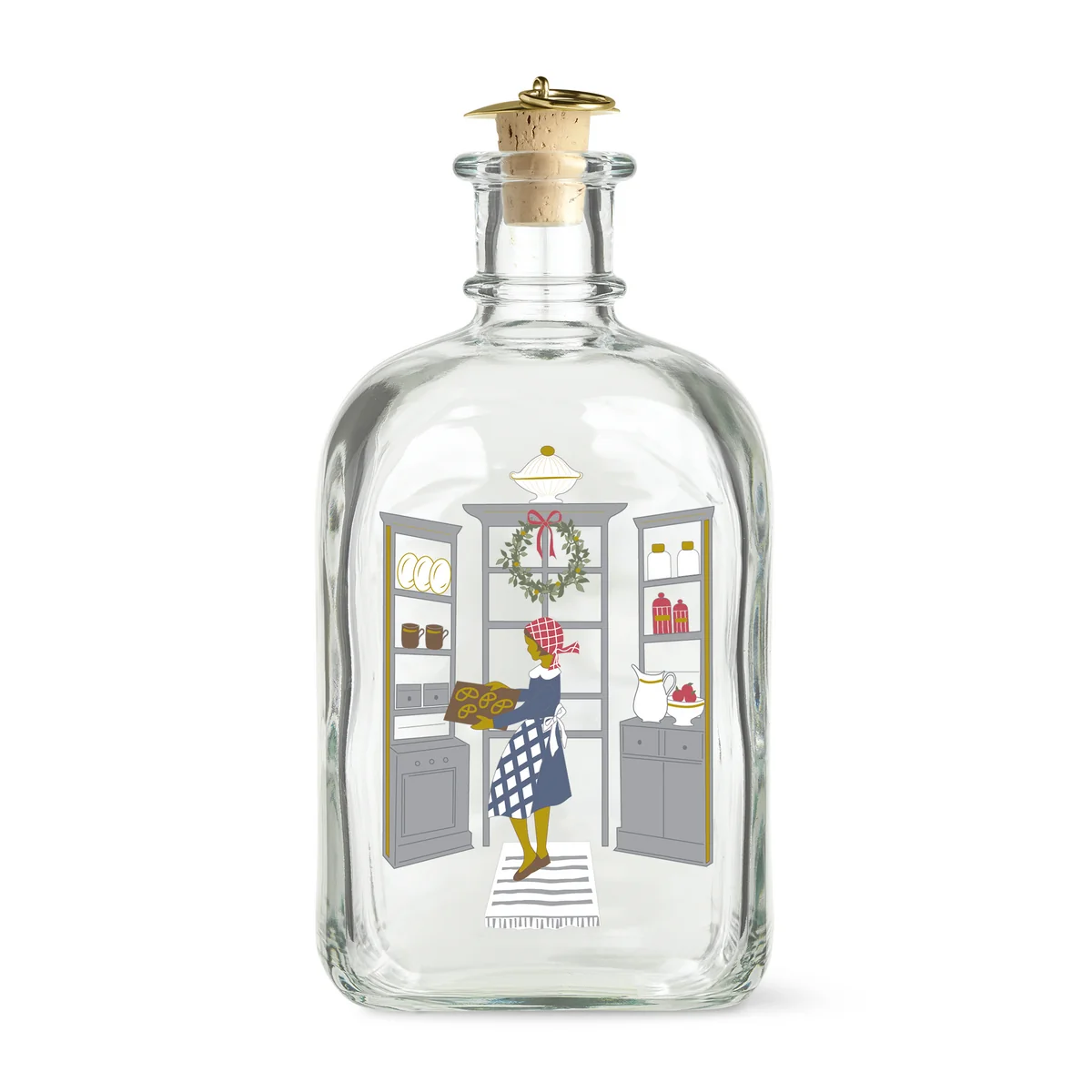 The Christmas bottle is made from blown glass and is conveniently closed with a cork lid.