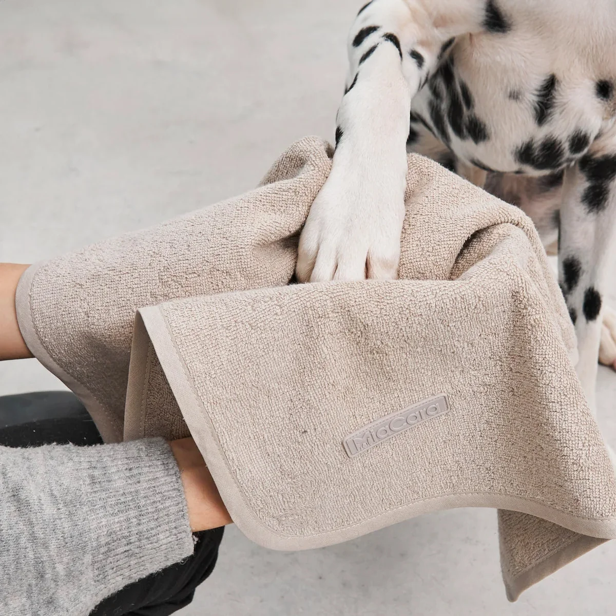 The Secco terry cloth dog towel from MiaCara pampers your dog after a refreshing bath and provides a pleasant and gentle feeling that makes your furry friend feel comfortable. It is made of highly absorbent material that quickly soaks up excess water and gives the dog a pleasant dry feeling. Thanks to its high absorption capacity, the towel dries in no time at all.