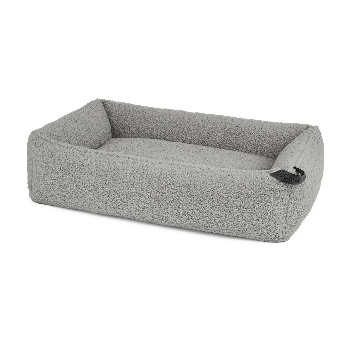 The dog bed is not only visually appealing, but also offers maximum comfort and sustainability. The mattress is filled with viscoelastic recycled foam, which adapts perfectly to the dog's body shape. This orthopaedic visco-foam is permanently elastic and offers the best possible support for the spine and relief for the joints. Sturdy foam side sections support the dog's head and ensure that the bed retains its shape even with regular use.