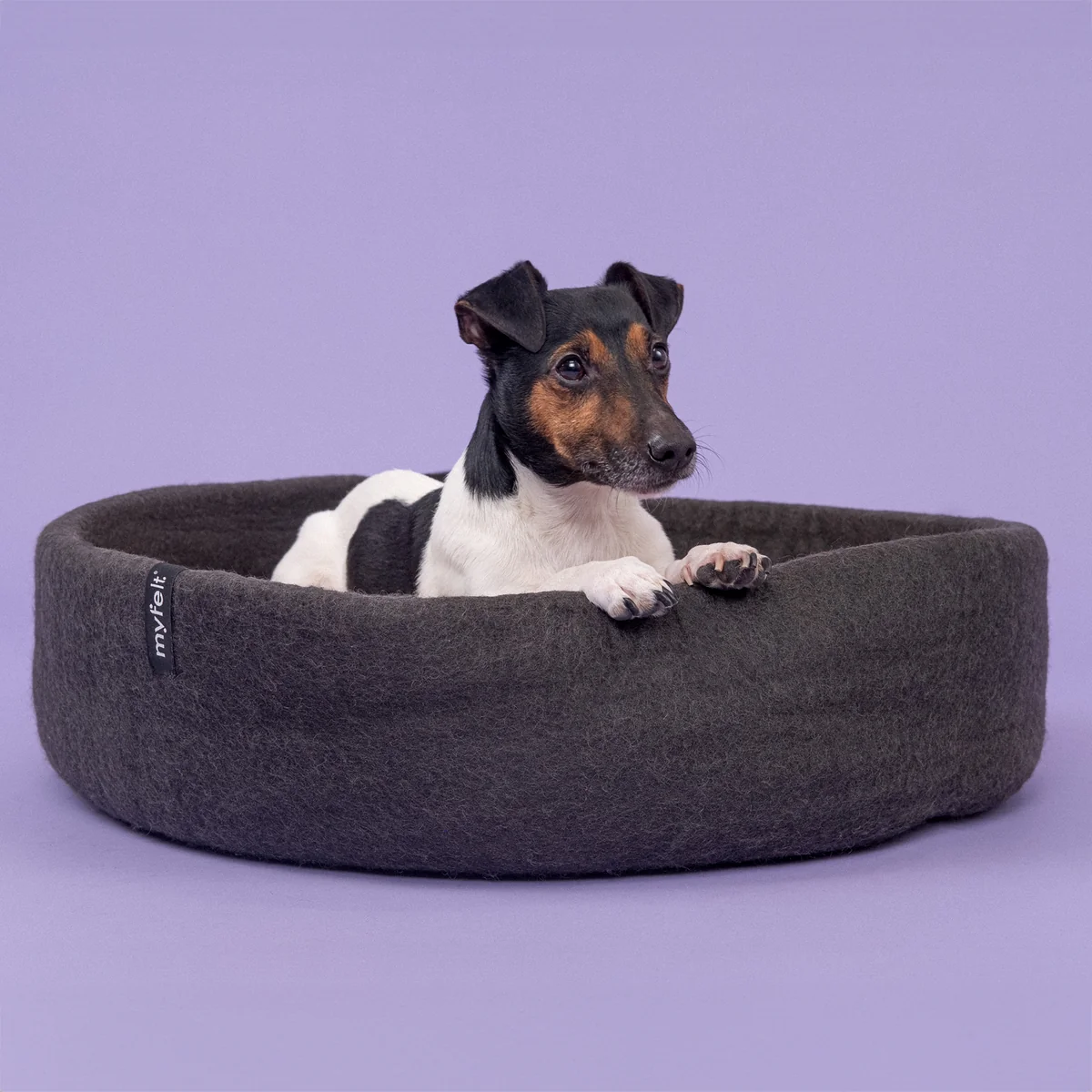 Dogs of all sizes feel comfortable and safe in the handmade Kuno dog basket made of pure new wool from myfelt . The sustainable material is easy-care, antibacterial and temperature-regulating thanks to the natural wool grease. This keeps the dog basket warm and cozy in winter and pleasantly cool in summer.
