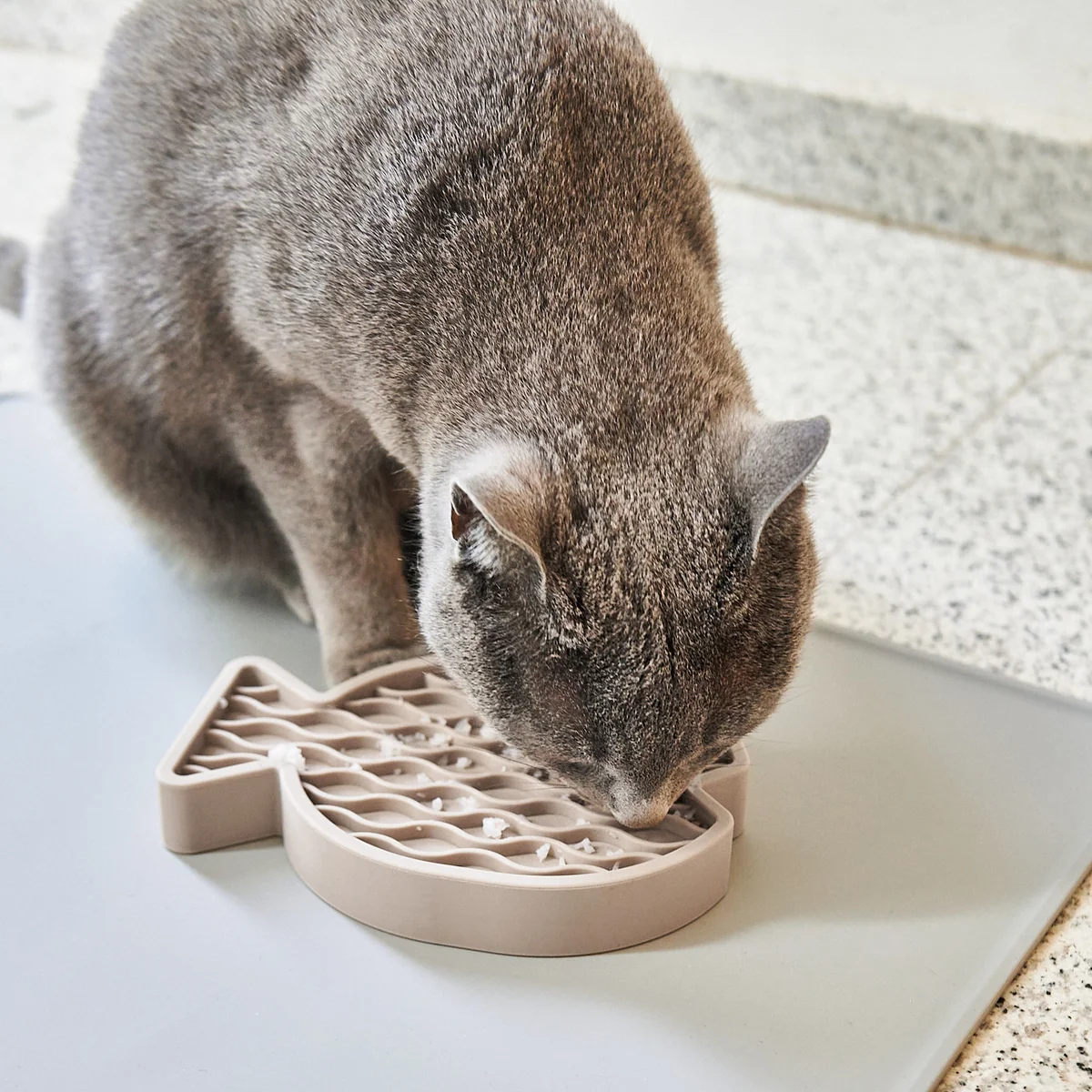 The Pesce activity toy for cats is the perfect accessory to give your cat unique moments of pleasure. Licking on Pesce has a relaxing effect on cats, playfully reduces stress and promotes concentration. At the same time, it helps to prevent them from gulping while eating. The stylized fish shape of Pesce not only arouses the cat's visual interest, but also challenges it again and again with its varied corners and curves. Two different surfaces ensure a varied gourmet experience.