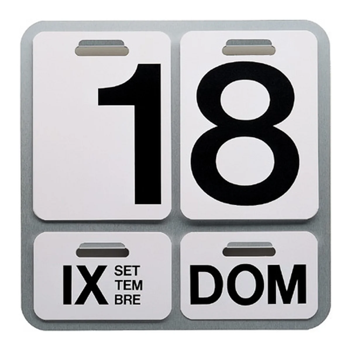 This wall calendar is available in several languages. It is made of anodised aluminium with lithographs on PVC-sheets.