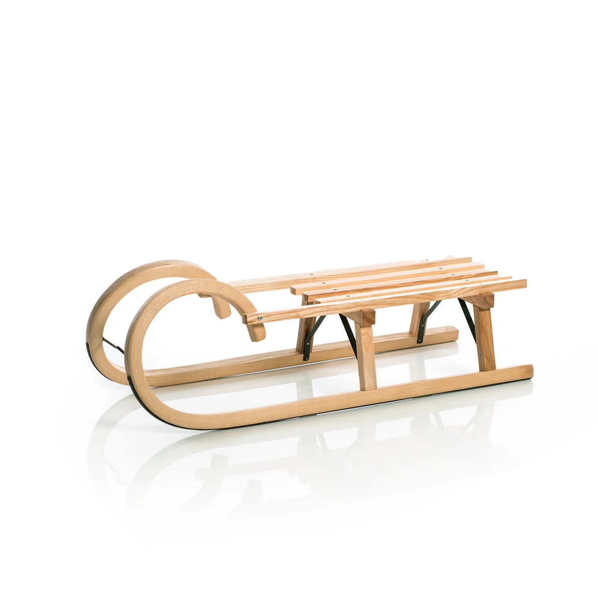 - Comfortable slatted seat for long tobogganing tours.
