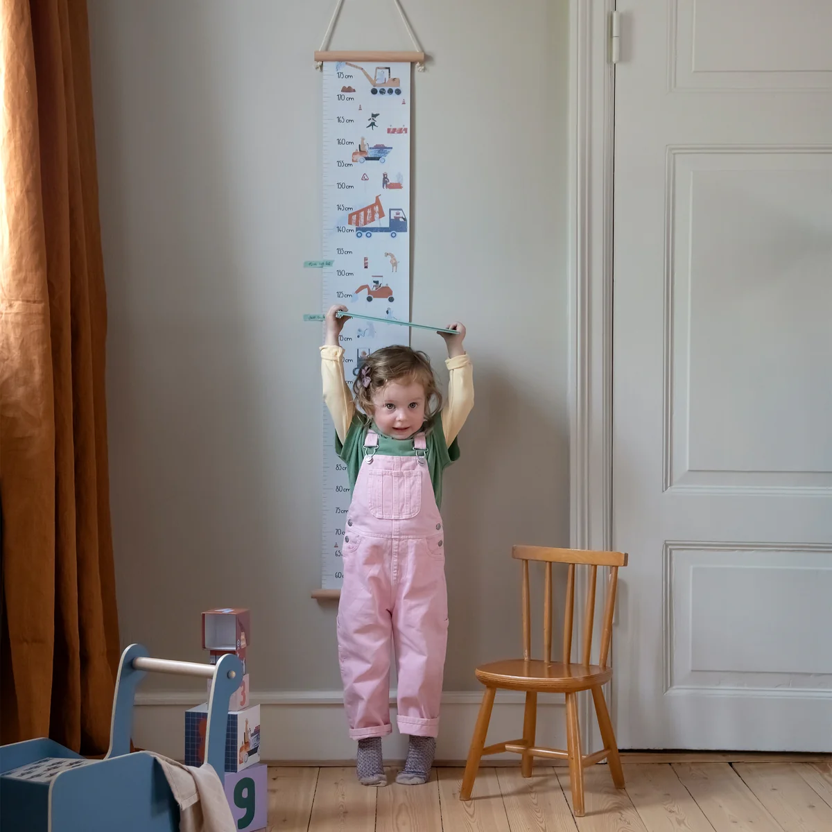 Children's measuring rod from Sebra helps to monitor the child's growth. It can be placed in the living room, bedroom or hallway. Equipped with a hanging loop, the measuring stick can be easily attached to the wall.